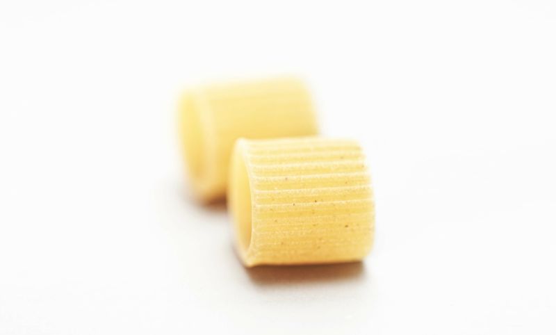 イタリア語で「半袖」という意味の太い筒状のショートパスタ。