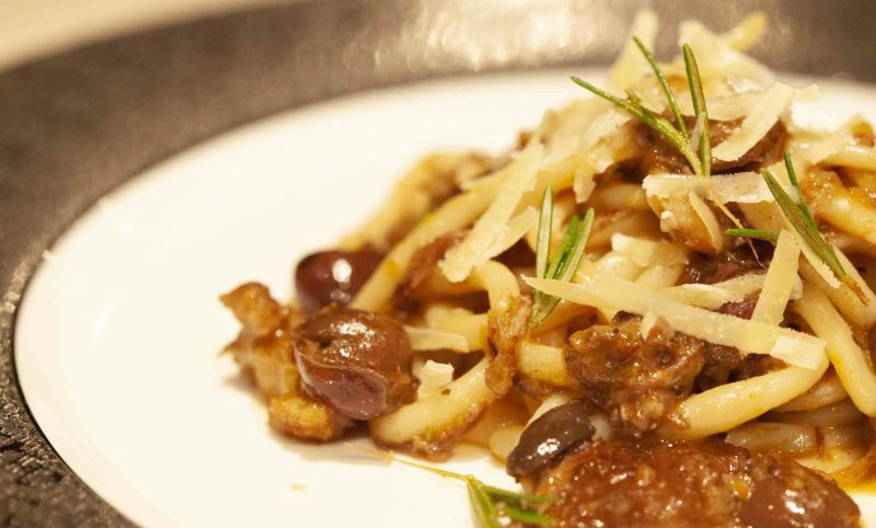 豚頬肉の燻製トマト煮込みソース